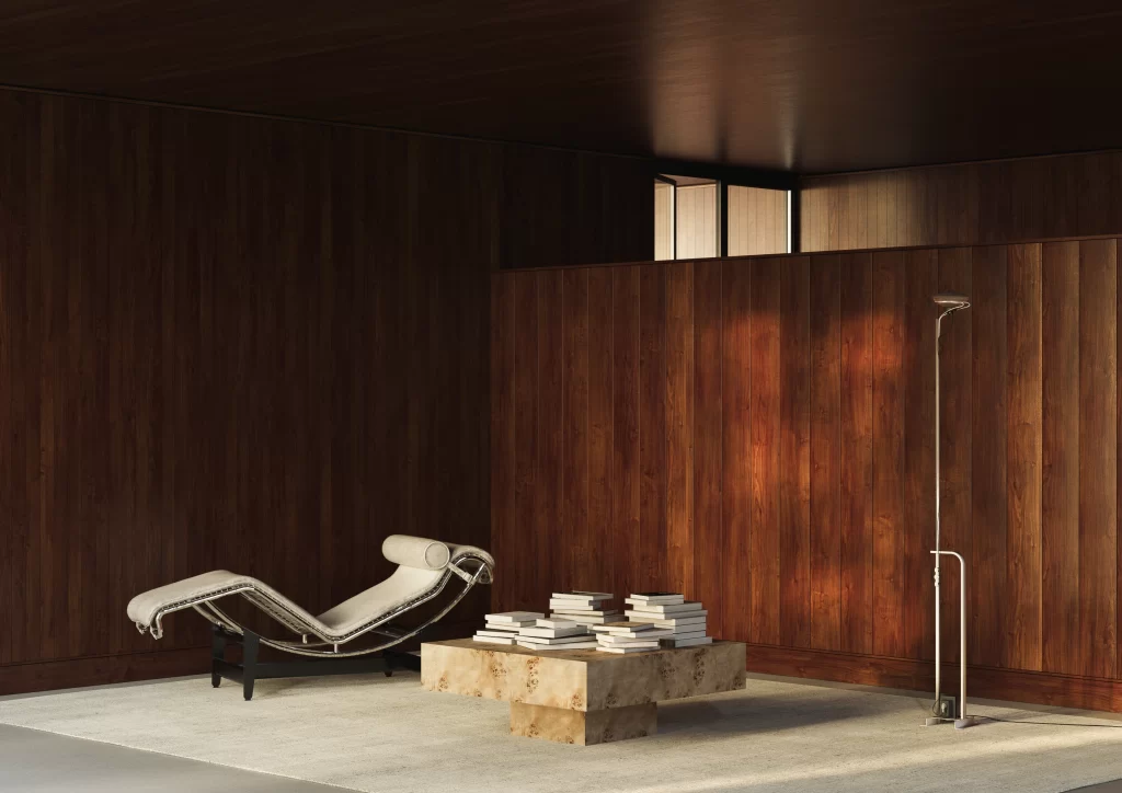 This is a material for spaces that already lean into richness: layered textiles, art on the walls, perhaps a fireplace nearby. A walnut burl table doesn’t ask for attention; it assumes it.
